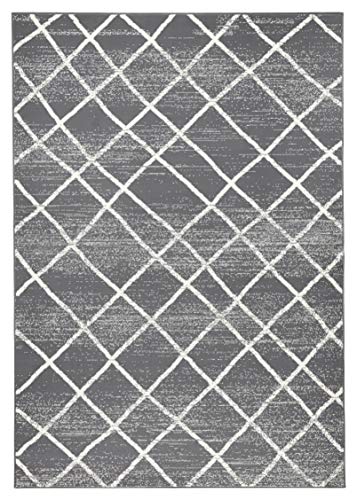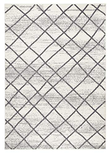 Zala Living Spot Rug - Velour Living Room Rug Modern Design Flat Weave Short Pile Rug for Kitchen, Hallway, Dining Room, Living Room, Bedroom - Grey Cream, 140 x 200 cm