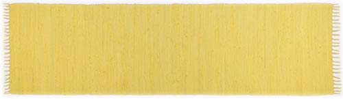 Theko Dhurry Happy Cotton Flat Weave Rug, 100% Cotton, Handwoven, Colour: Yellow, 60 x 120 cm