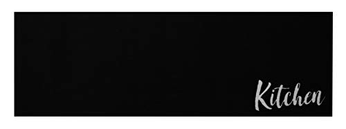 Zala Living Cook & Clean Runner - Non-Slip Rug Runner Flat Weave Short Pile Rug Kitchen Rug Washable Kitchen Runner The Kitchen is Open for Hallway, Kitchen, Living Room - Black Grey, 50 x 150 cm