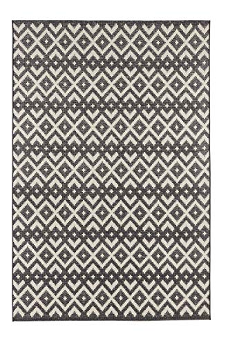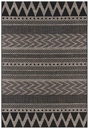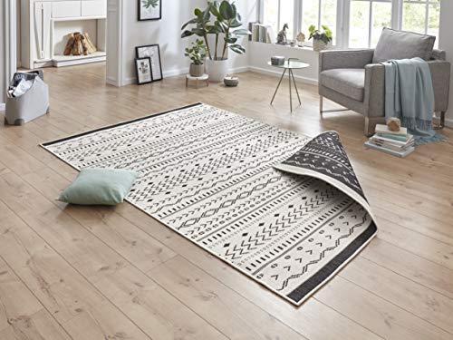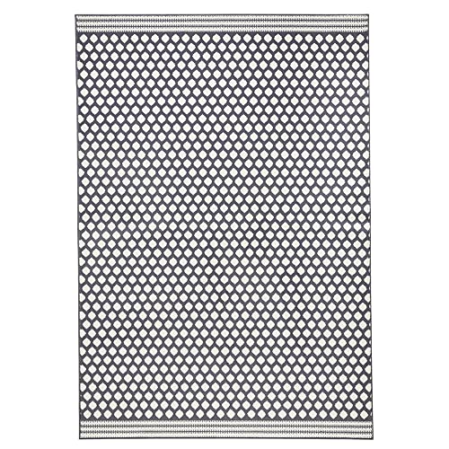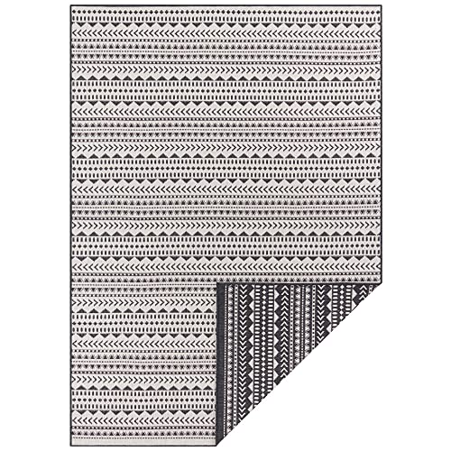 bougari Outdoor Rug Flat Weave Reversible Cuba Rug (80 x 150 cm, 100% Polypropylene, Durable and Easy to Clean, UV and Moisture Resistant, Suitable for Underfloor Heating Black/Cream