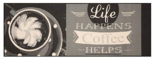 Zala Living Vibe Runner - Kitchen Runner Non-Slip Rug Runner Flat Weave Short Pile Rug Kitchen Rug Washable Life Happens for Hallway, Kitchen, Living Room, Bathroom, Bathroom - Grey, 180 x 67 cm