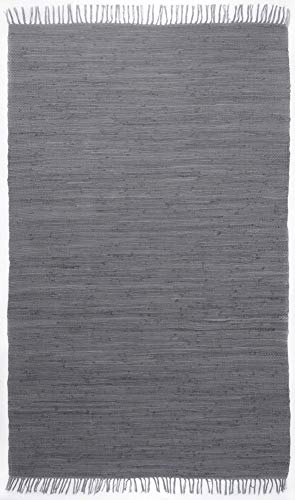 Theko Dhurry Fleckerl Flat Weave Rug Made of 100% Cotton; Handwoven, Washable, Reversible | 120 x 180 cm; Anthracite | Happy Cotton