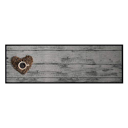 Zala Living Cook & Clean Runner - Non-Slip Rug Runner Flat Weave Short Pile Rug Kitchen Rug Washable Kitchen Runner Coffee Bean Love for Hallway, Kitchen, Living Room - Grey Brown, 50 x 150 cm