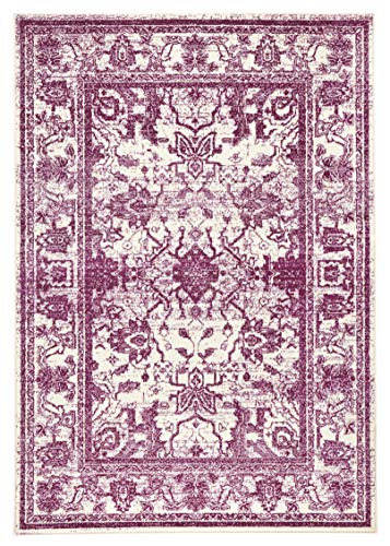 Zala Living Glorious Orient Rug - Oriental Rug Orient Design Tightly Woven Vintage Short Pile Flat Weave Living Room Rug for Dining Room, Living Room, Bedroom - Purple Cream, 140 x 200 cm