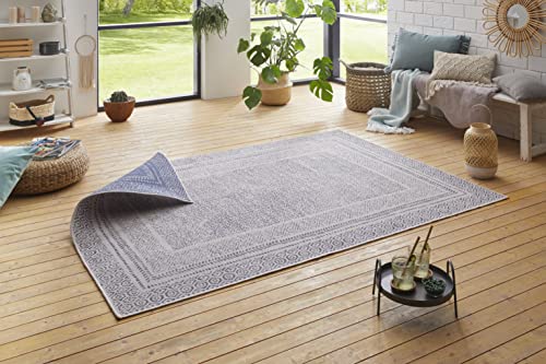 bougari Palma Outdoor Rug Flat Weave Reversible Rug 80 x 150 cm, 100% Polypropylene, Durable and Easy to Clean, UV and Moisture Resistant, Suitable for Underfloor Heating Grey/Cream