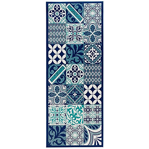 Zala Living Soho Runner - Kitchen Runner Non-Slip Rug Runner Flat Weave Short Pile Rug Kitchen Rug Washable for Hallway, Kitchen, Living Room, Bathroom, Blue Cream, 80 x 200 cm