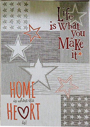 ASPECT "Home/Heart Letters Nostalgic Collection with Stars Flat Weave Indoor/Outdoor Rug, Polypropylene, Light Grey, 160 x 230 cm