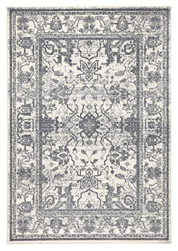 Zala Living Glorious Orient Rug - Oriental Rug Orient Design Tightly Woven Vintage Short Pile Flat Weave Living Room Rug for Dining Room, Living Room, Bedroom - Grey Cream, 70 x 140 cm