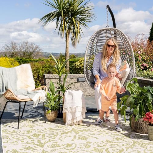 Olive Green Large Floral Flatweave Rug Outdoor Indoor Plastic Woven Washable UV Protection Weatherproof Awning Garden Rug Patio BBQ Pet Friendly Camping Beach Covering 160cm x 230cm