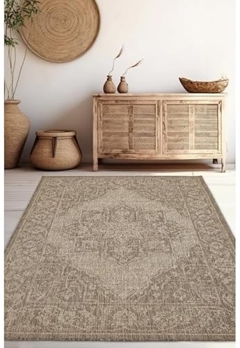 Natural Jute Flatweave Outdoor Rug Awning Carpet Plastic Geometric Rug Washable Garden Patio Neutral Summer Mat Camping Mat Balcony Floor Small 80cm x 150cm