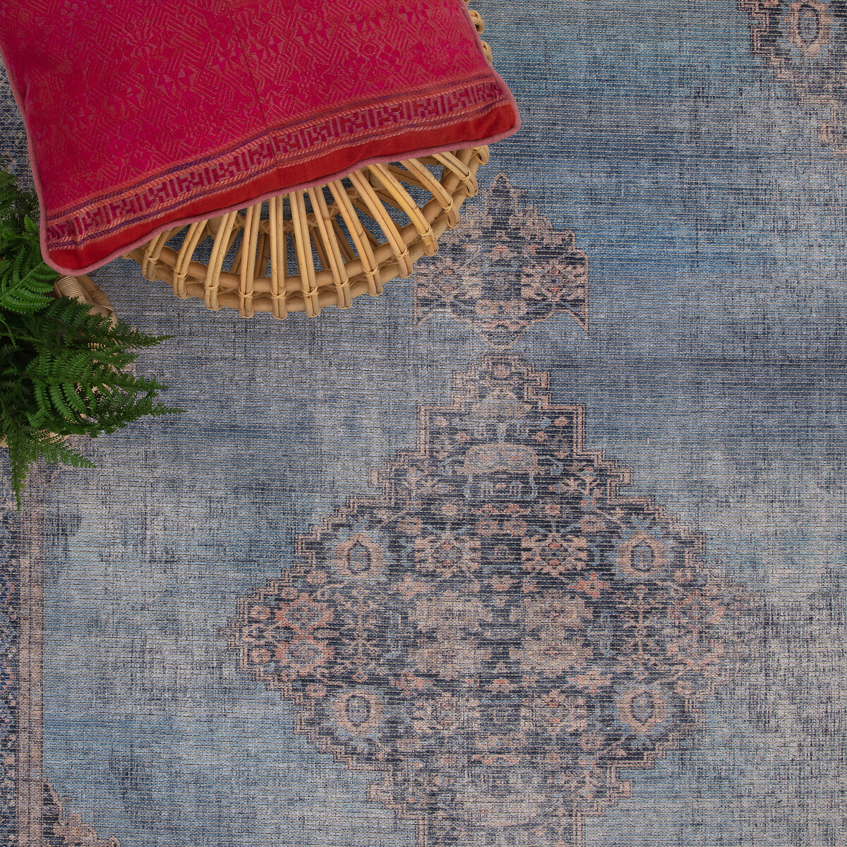 furn. Alentejo Rug – Indoor/Outdoor Watercolour Floral Bird Washable Weather Resistant Flatweave Rug (Ocean - 120x170cm)