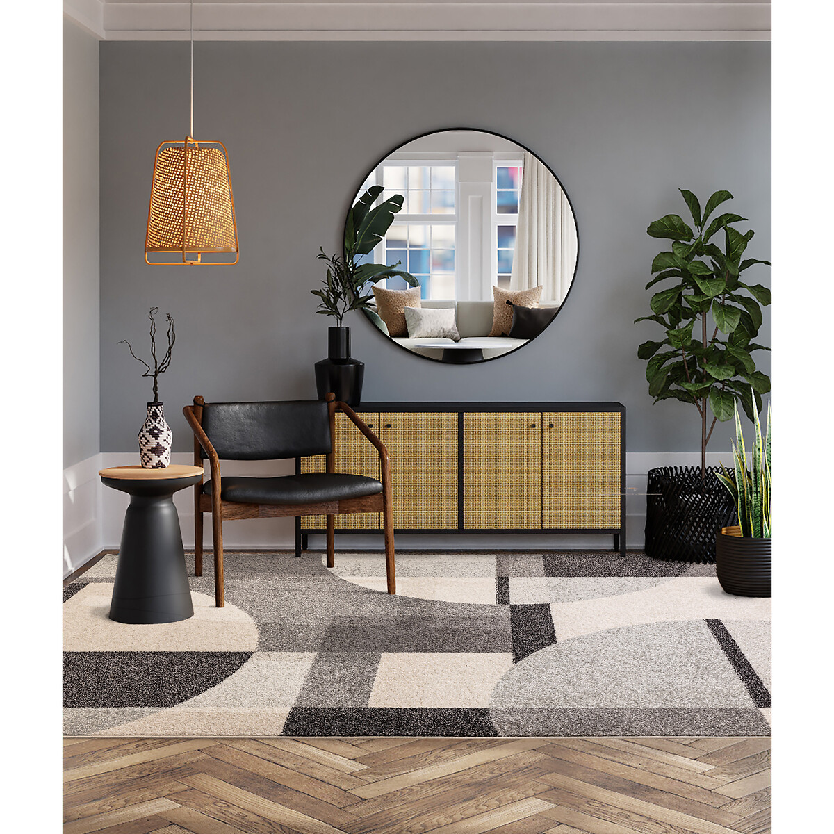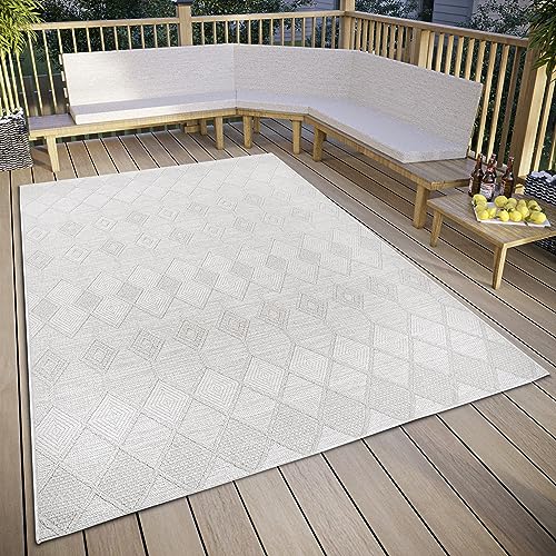 Cream White Geometric Flatweave Indoor Outdoor Rug Plastic Woven Washable UV Protection Weatherproof Awning Garden Rug Patio BBQ Pet Friendly Camping Beach Covering 120cm x 170cm
