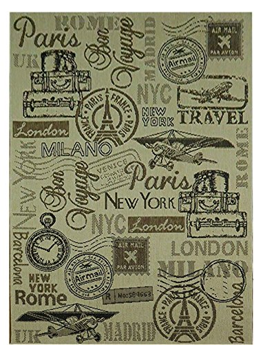 ASPECT Nostalgic Collection/World Cities Flatweave Indoor/Outdoor Rug-Beige&Brown (120x170cm), Polypropylene, Beige, 170 x 120 x 0.5 cm