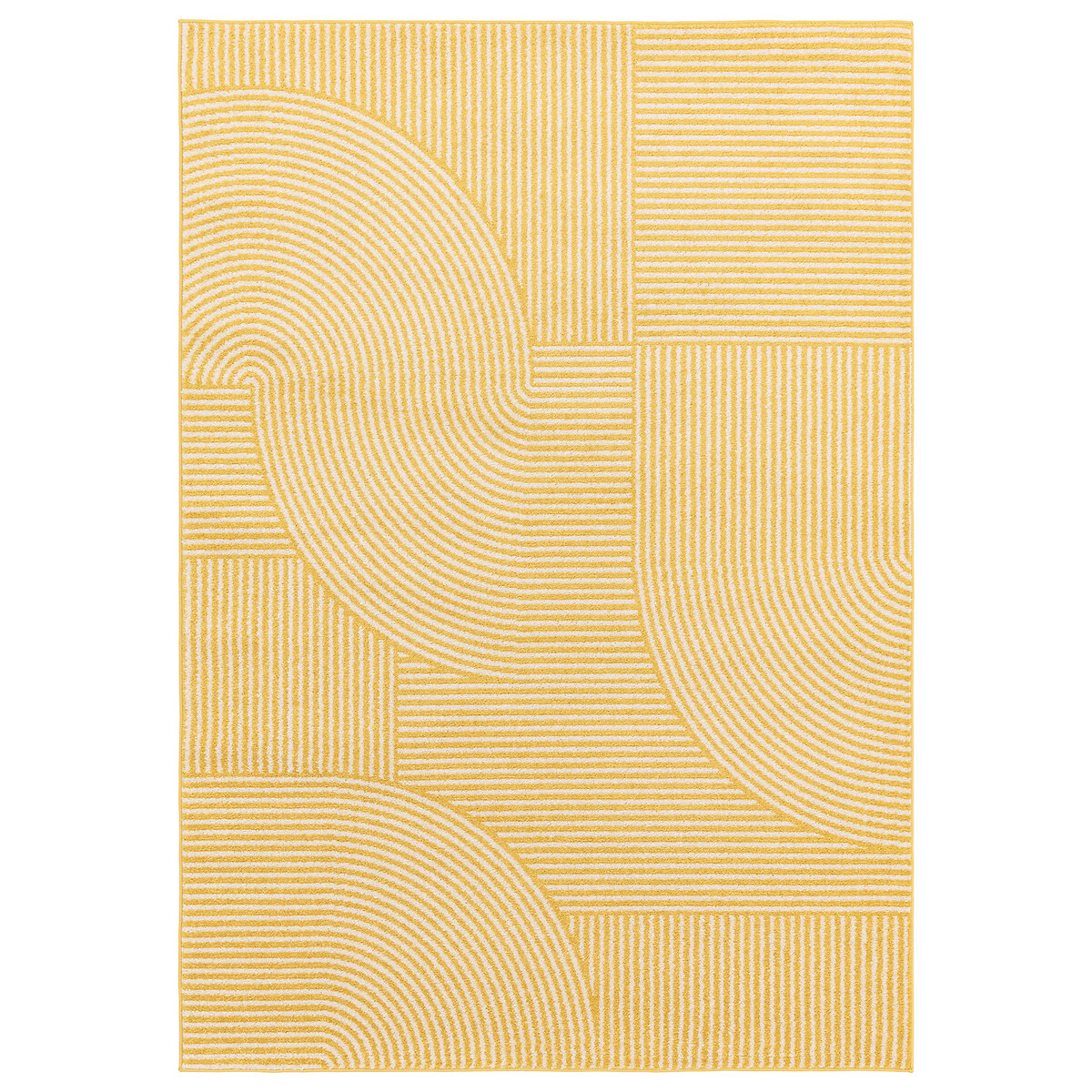 Durable Soft Plastic Yellow Triangle Outdoor Garden Flatweave Carpet Rug Weather Mould Resistant Washable Easy Clean Lawn Patio Decking Pergola Dining Non Shed Waterproof Floor Mat 160cm x 230cm