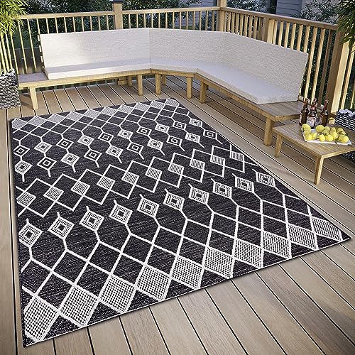 ELLE Decoration Pitu Indoor & Outdoor Rug Macrame Boho Ethnic Pattern Flatweave Weatherproof Outdoor Rug for Living Room Hallway Balcony Patio Garden Black Cream 155 x 230 cm