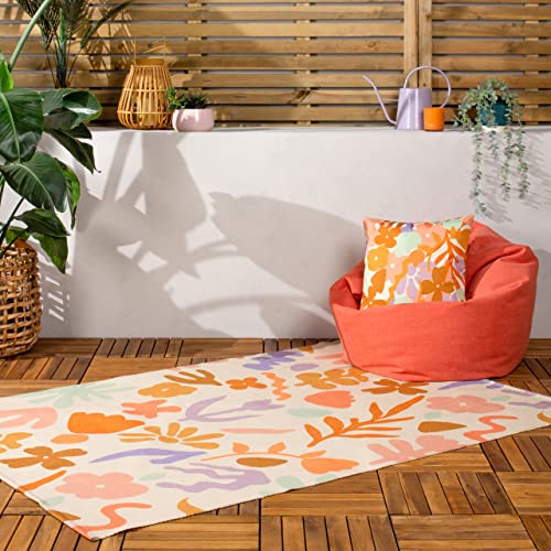 furn. Amelie Rug – Indoor/Outdoor Retro Floral Washable Weather Resistant Flatweave Rug (Multicolour - 120x170cm)