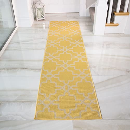 Habitat Trellis Design Flatweave Yellow Ochre Washable Durable Indoor Outdoor Living Rug Rugs