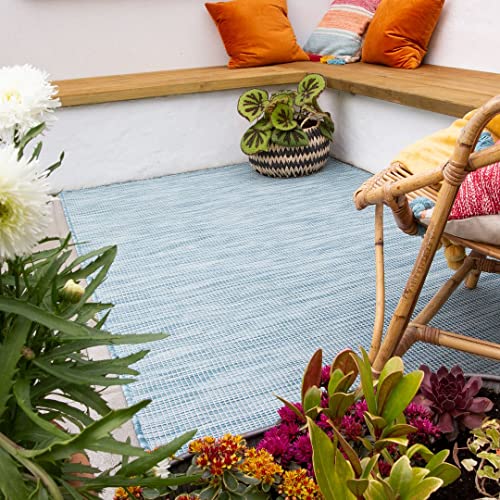 Durable Duck Egg Outdoor Flatweave Patio Rug Plastic Blue Textured Garden Weather Resistent Picnic Area Rugs 117cm x 170cm