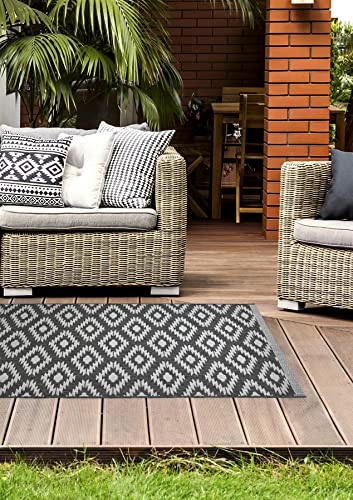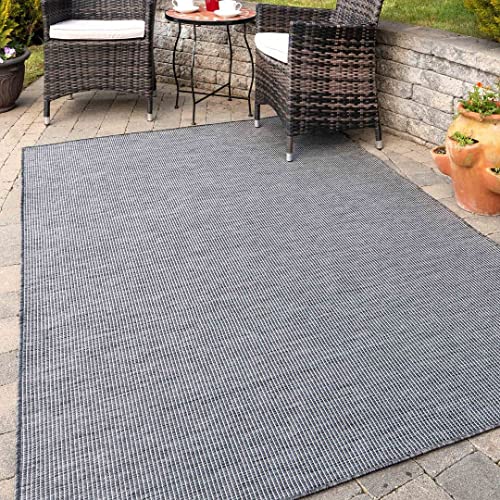 Durable Outdoor Flatweave Patio Garden Rug Slate Grey Plastic Weather Resistant Textured Picnic Area Rugs 157cm x 230cm