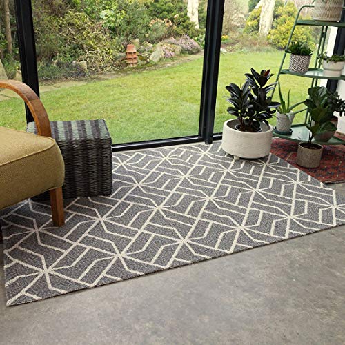 Durable Grey Weather Proof Flatweave Rug Outdoor Washable Non Shed Pet Friendly Patio Lawn Garden Plastic Mould Resistant Floor Carpet Mat Rugs 120cm x 170cm