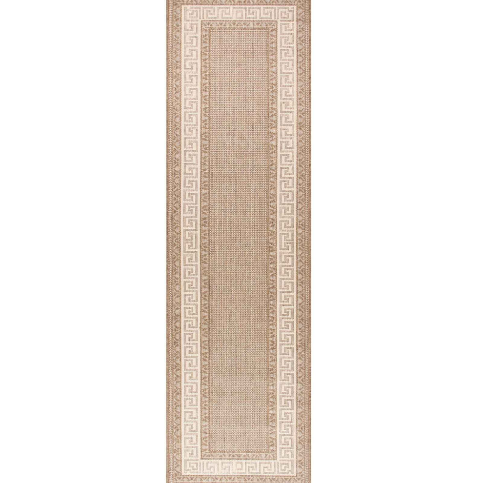 (Greek - Brown, 60 x 180 cm : Runner) Non Slip Outdoor/Indoor Flatweave Rugs Patio garden Small Extra Large Mats Hall Runner Modern Geometric Trellis