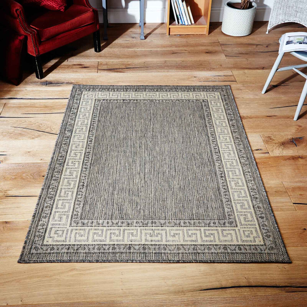 Modern Style Rugs Flatweave Border Design Very Hardwearing Weather Resistant Grey Area Rug. Available for both Indoor Outdoor Usage, Patio, Garden, Living Room, Dining Room Large Rug - 120x170cm