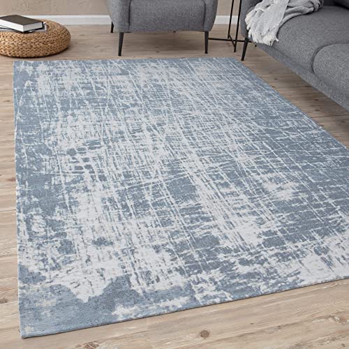 THE RUGS Machine Washable Rug – Abstract Design Rugs for Living Room, Bedroom, Hallway, Flat-weave Area Rugs, (Blue, 120x170 cm)