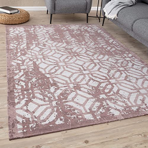 THE RUGS Machine Washable Rug – Geometric Design Rugs for Living Room, Bedroom, Hallway, Flat-weave Area Rugs, (Pink, 80x150 cm)