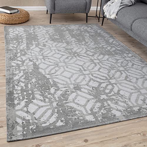 THE RUGS Machine Washable Rug – Geometric Design Rugs for Living Room, Bedroom, Hallway, Flat-weave Area Rugs, (Grey, 120x170 cm)