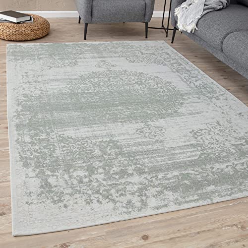 THE RUGS Machine Washable Rug – Vintage Design Rugs for Living Room, Bedroom, Hallway, Flat-weave Area Rugs, (Green, 120x170 cm)