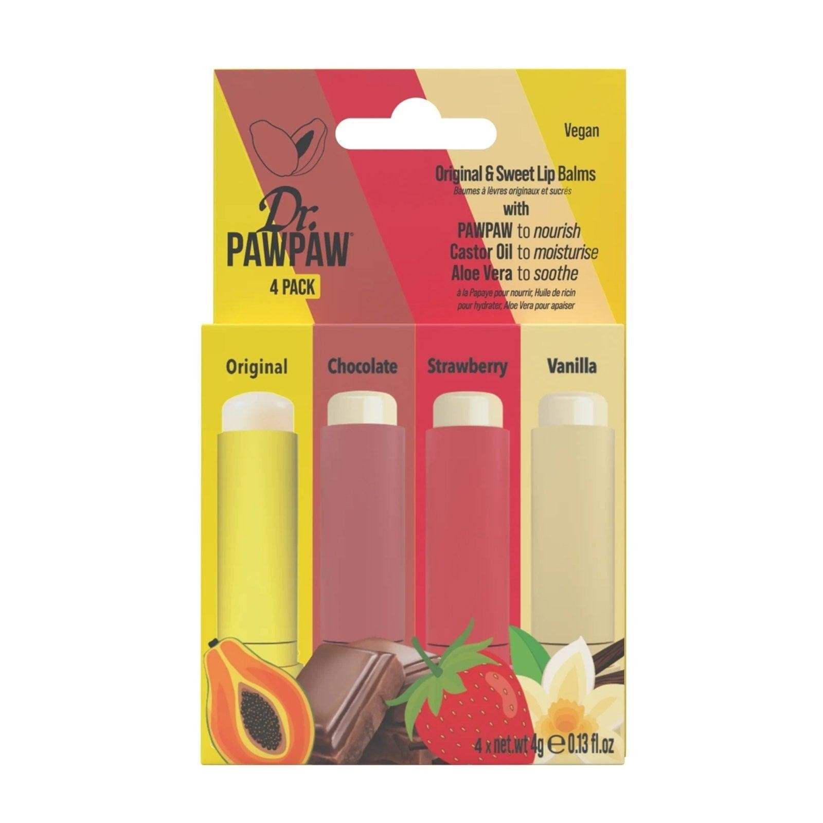 Dr Paw Paw Lip Balm Sticks 4 Pack Hydrating Flavoured Balm Set 4 x 4g