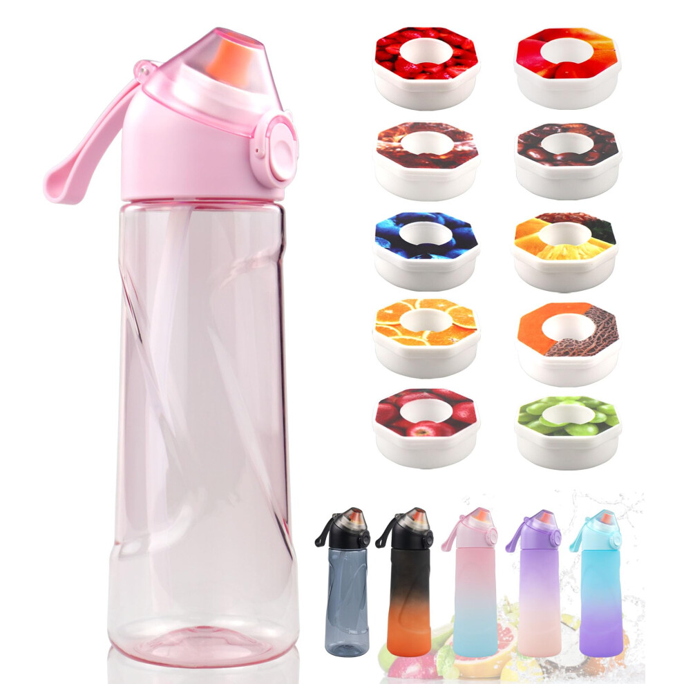 (Pink+7 Fruit Pods) UK 650Ml Air Water Bottle with 7 Fruit Pods Included Flavoured Water Bottle Up