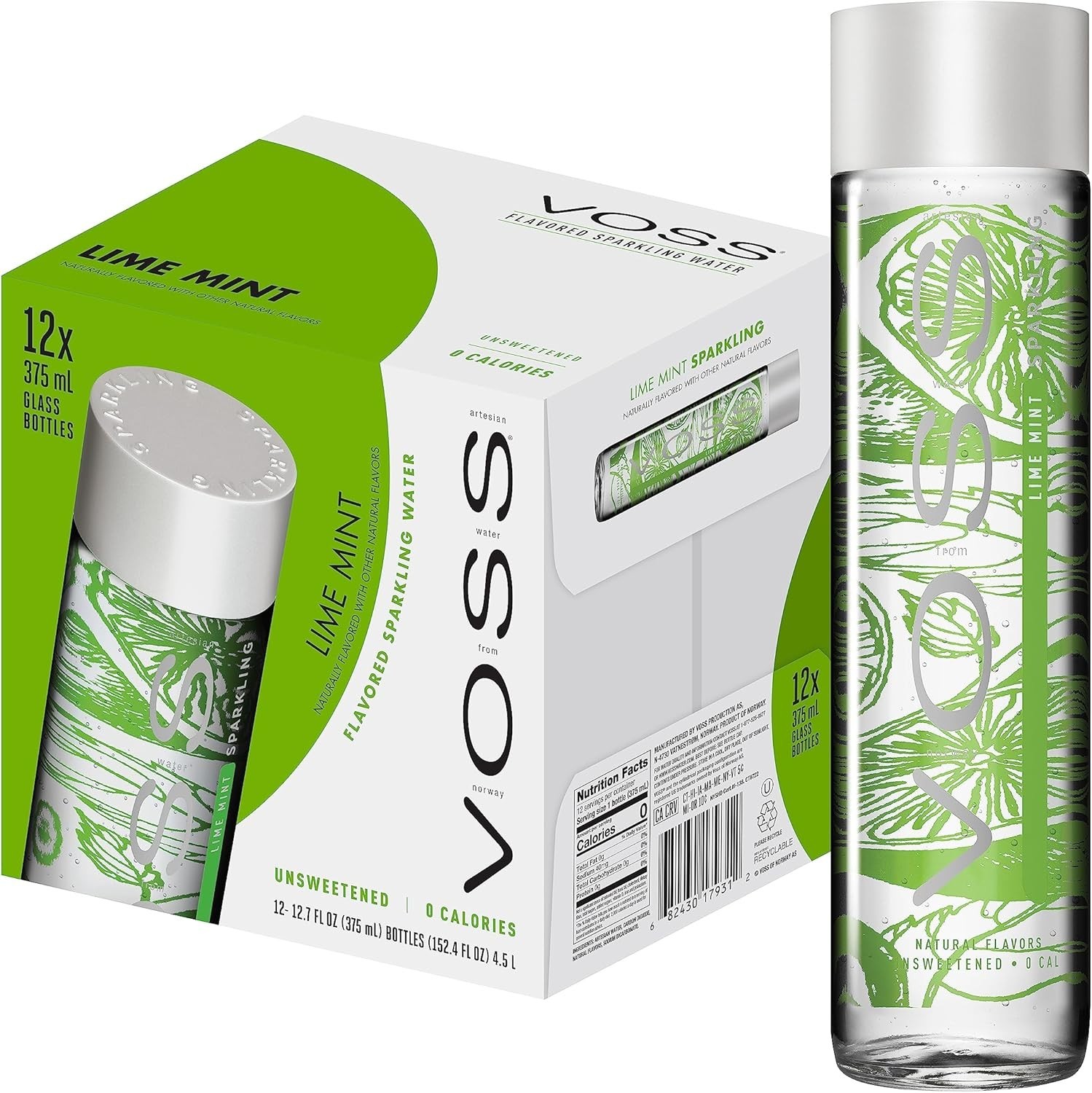 VOSS Lime Mint Flavoured Sparkling Water, 12 x 375ml Original Glass Bottle