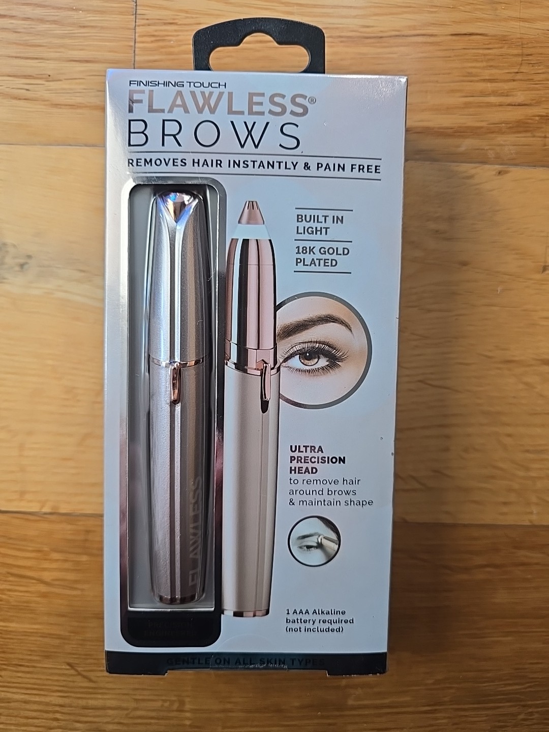 Finiahing Touch Flawless Brows Trimmer 18k Gold Plated LED Light Battery Powered