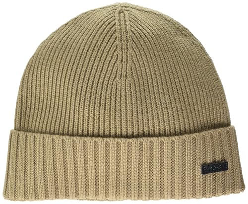 BOSS Men's Fati Ribbed Knit Hat Beanie, Medium Flax Seed, One Size