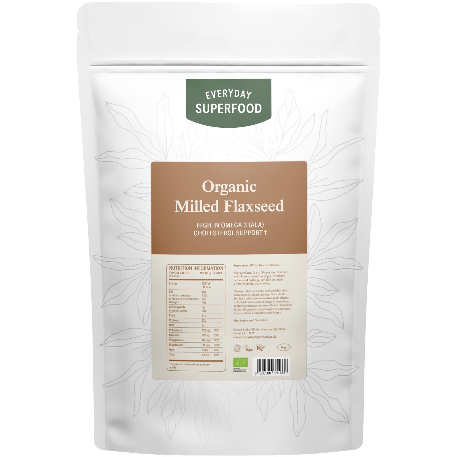 Milled Flaxseed Organic Ground Flaxseed 1kg | Cold Milled Linseed Raw Flax Seed