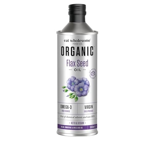 Eat Wholesome Organic Flax Seed Oil, 500ml - Cold Pressed, Unrefined, High Source of Omega 3, 100 Percent Pure and Natural, For Smoothies, Salads, Skincare and Hair, Vegan, CO2 Neutral Packaging