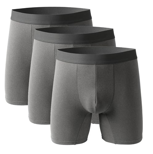 FUELIX Mens Long Leg Boxers Mens Underwear Boxers Anti Chafing Underwear Fleece Boxer Shorts Trunks Thermal Pants for Men Winter Warm Pants Underwear Base Layer Cold Weather B,L