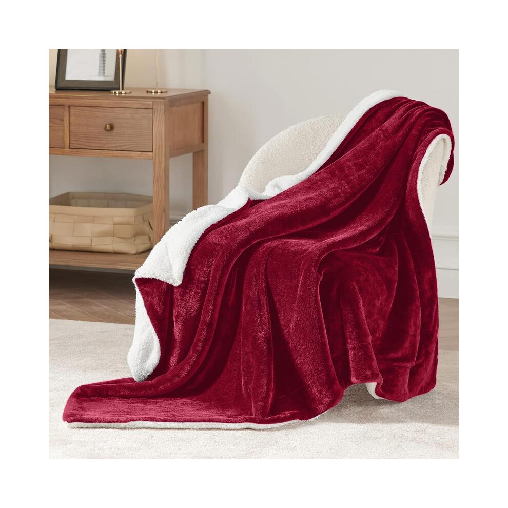 (Burgundy, Super King (230x270cm)) Yorkshire Sherpa Fleece Blanket ,Bed Throws Blankets For Sofas ,Soft Fluffy Thick Blanket, Reversible Microfiber Bl