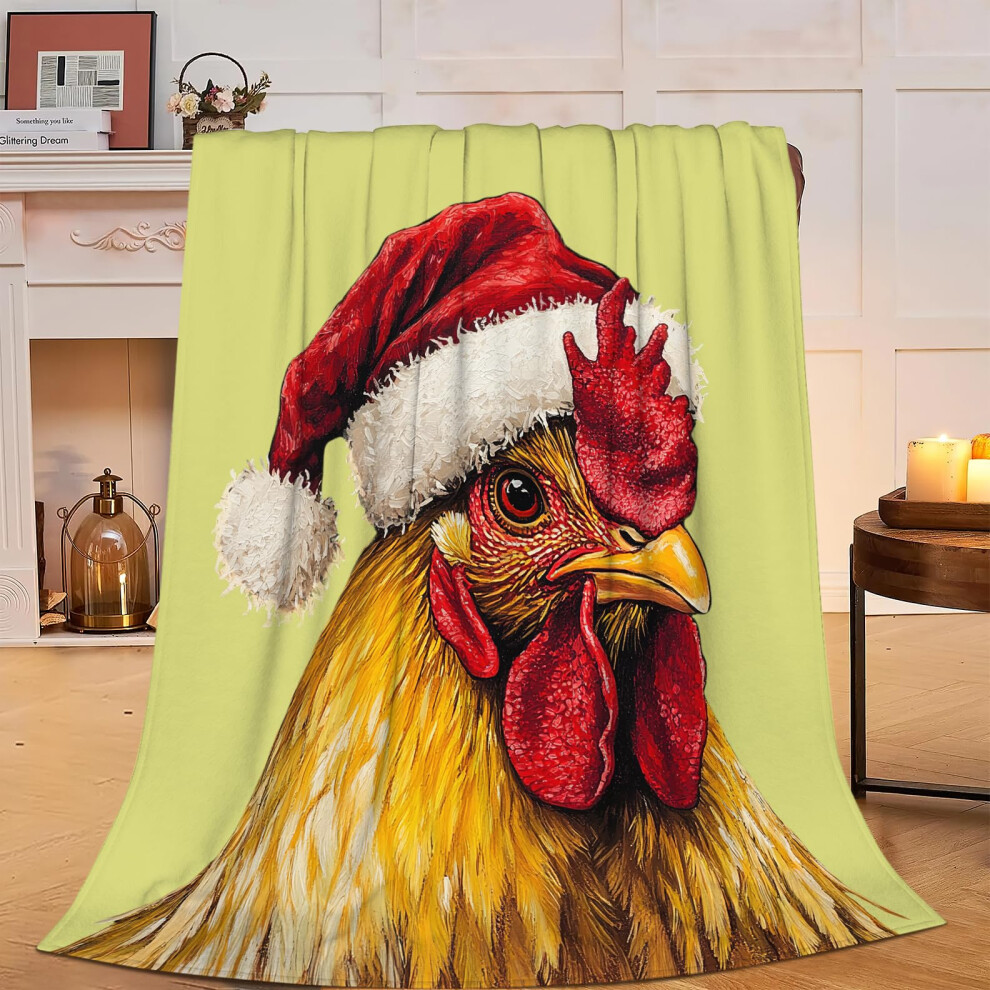 Rooster Christmas Blanket - Soft Flannel Fleece, Throw Size, Plush Bedding Decor, Gift for Rooster Lovers, Kids