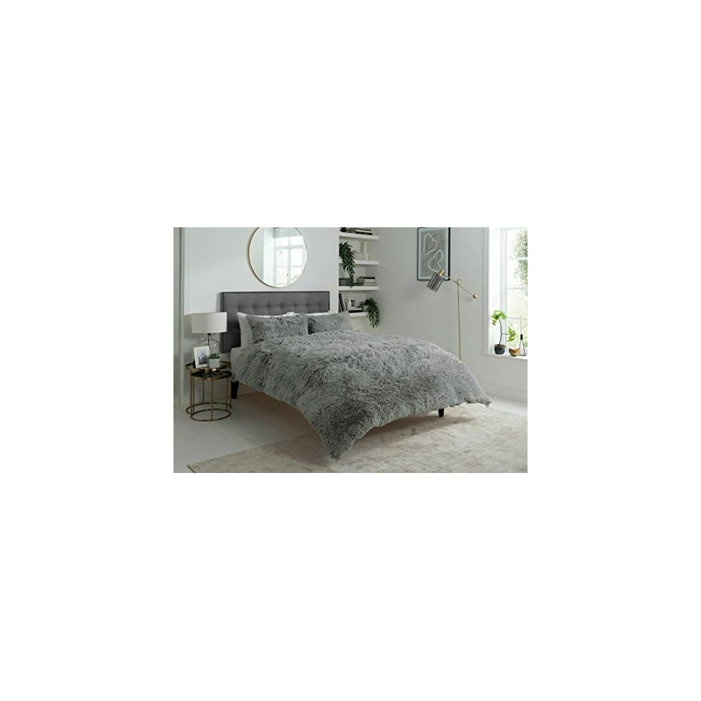 Brentfords Super King Teddy Fleece Duvet Sets, Thermal Bedding Set Superking Size Bed Quilt Cover Ultra Soft Fluffy Christmas Bedding with Pillowcases, Charcoal Grey
