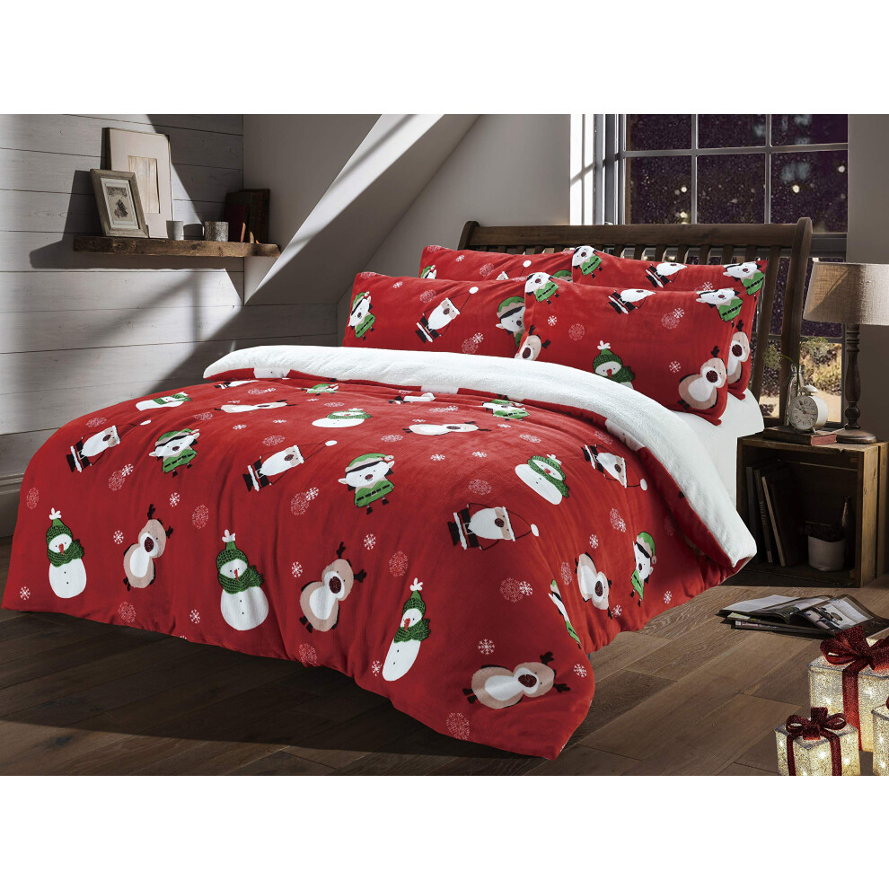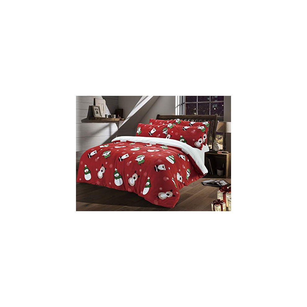 LOOMS & LEAVES Christmas Teddy Fleece Duvet Quilt Cover Cosy Bedding Set Pillow Case Super Soft (SINGLE)