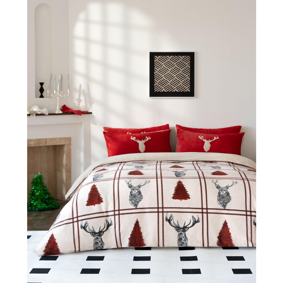 LSU Christmas Stag Teddy Bear Fleece Duvet Cover Set Fluffy Warm Soft Cosy Bedding Set
