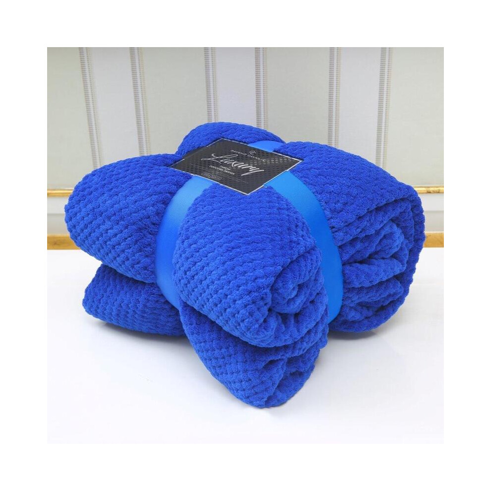 (ELECTRIC BLUE, DOUBLE [150CM*200CM]) Luxury Popcorn Waffle Blanket Fleece Travel Throw Sofa Bed Warm Cosy Double King