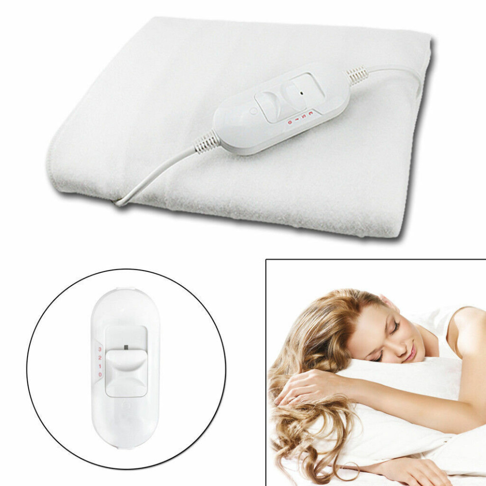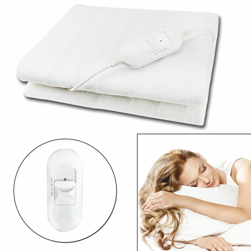 Electric Blanket Heated DOUBLE Under Bed Comfort Detachable Controller with 3 Heat Settings Polyester White Super Cosy Washable Fleece Heated Blanket