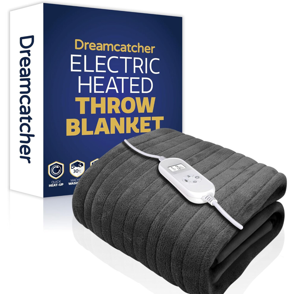 Dreamcatcher Deluxe Grey Electric Throw Heated Double Over Blanket Soft Fleece 9 Heat & 12 Timer Settings