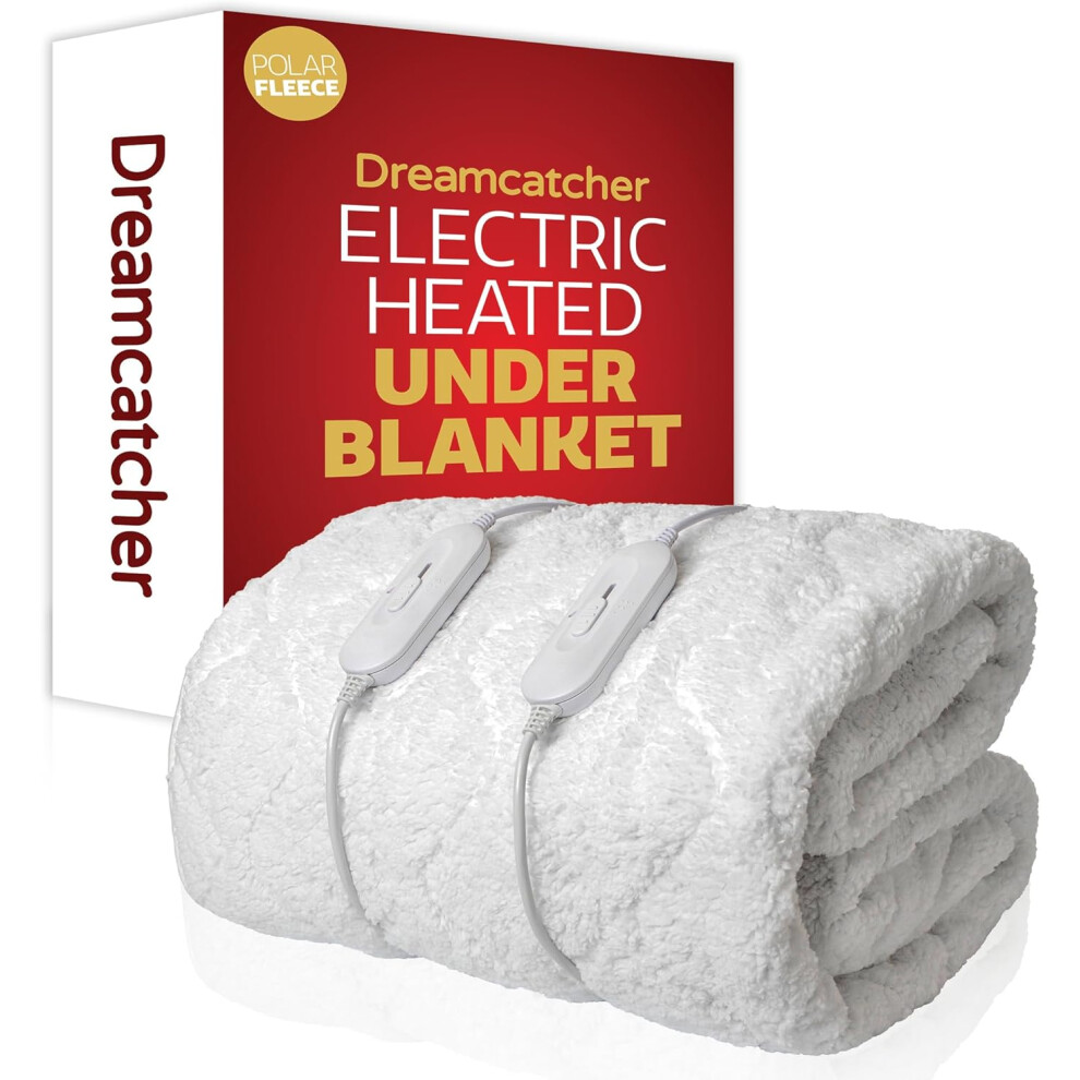 Dreamcatcher Deluxe Double Electric Blanket Dual Control Fitted Polar Fleece Heated Bed Underblanket 190 x 137cm 3 Heat Settings