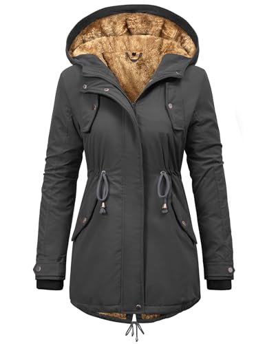 Vancavoo Womens Parka Winter Coats Waterproof Jacket Hooded Coat Fleece Lined Jacket Ladies Arctic Velvet Warm Outdoor Windbreaker Hoodies zip up Sweatshirt Outwear with Pockets,Dark grey,M