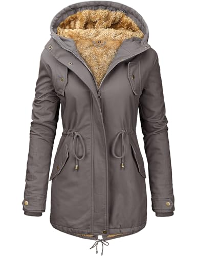 Vancavoo Womens Parka Winter Coats Hooded Coat Fleece Lined Jacket Ladies Arctic Velvet Outdoor Warm Hoodies zip up Sweatshirt Windbreaker Hoodies Cotton Outwear with Pockets,Dark grey,XL