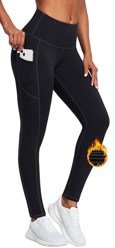 IUGA Fleece Lined Leggings for Women High Waisted Thermal Leggings with Pockets Yoga Pants for Workout Black